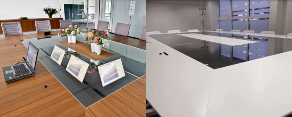 Após a altura, tamanho e largura, o factor tempo é olhado como a 4ª dimensão. Uma mesa com encrans planos, a um nivel inferior, permitindo a partilha de documentos e apresentações facilmente. Este arranjo também permite aos participantes numa reunião manter o contacto visual entre eles, pois não terão de olhar para um monitor entre eles ou numa parede, que garante uma maior interactividade e dinamismo, poupando tempo e aumentando a eficácia.